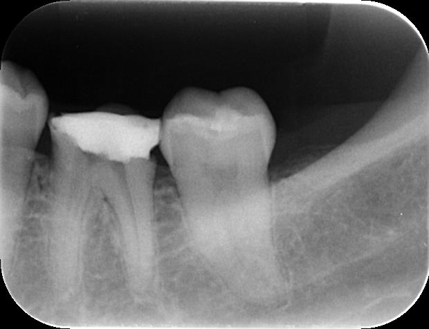 <術後>1回目の治療で症状がなくなり、2回目に根管充填し終了。根の先端までピッタリ緊密に充填されていますね。