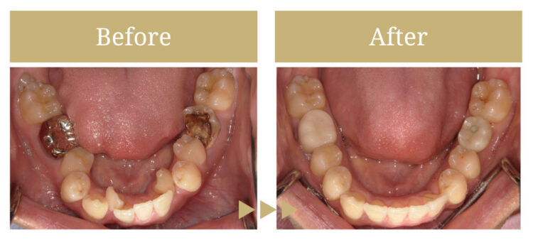 噛み合わせのバランスが整い、奥歯もインプラントを行うことで噛む場所を回復させることができました。
