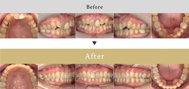 被せ物についてはサイズが合っていなかったため、矯正中は一時的に仮歯を装着し、矯正が完了したら強度に優れたジルコニアの被せ物にすることを提案しました。