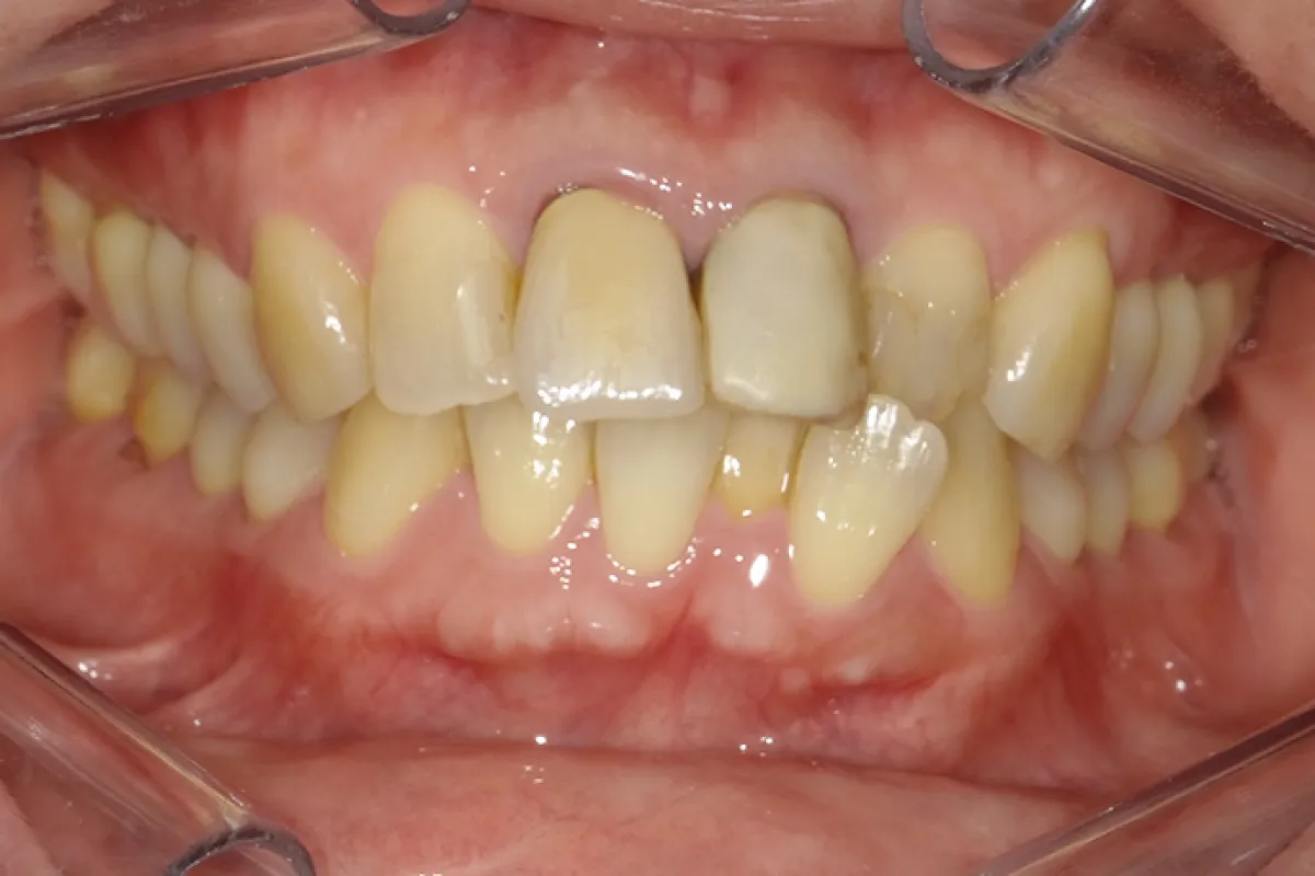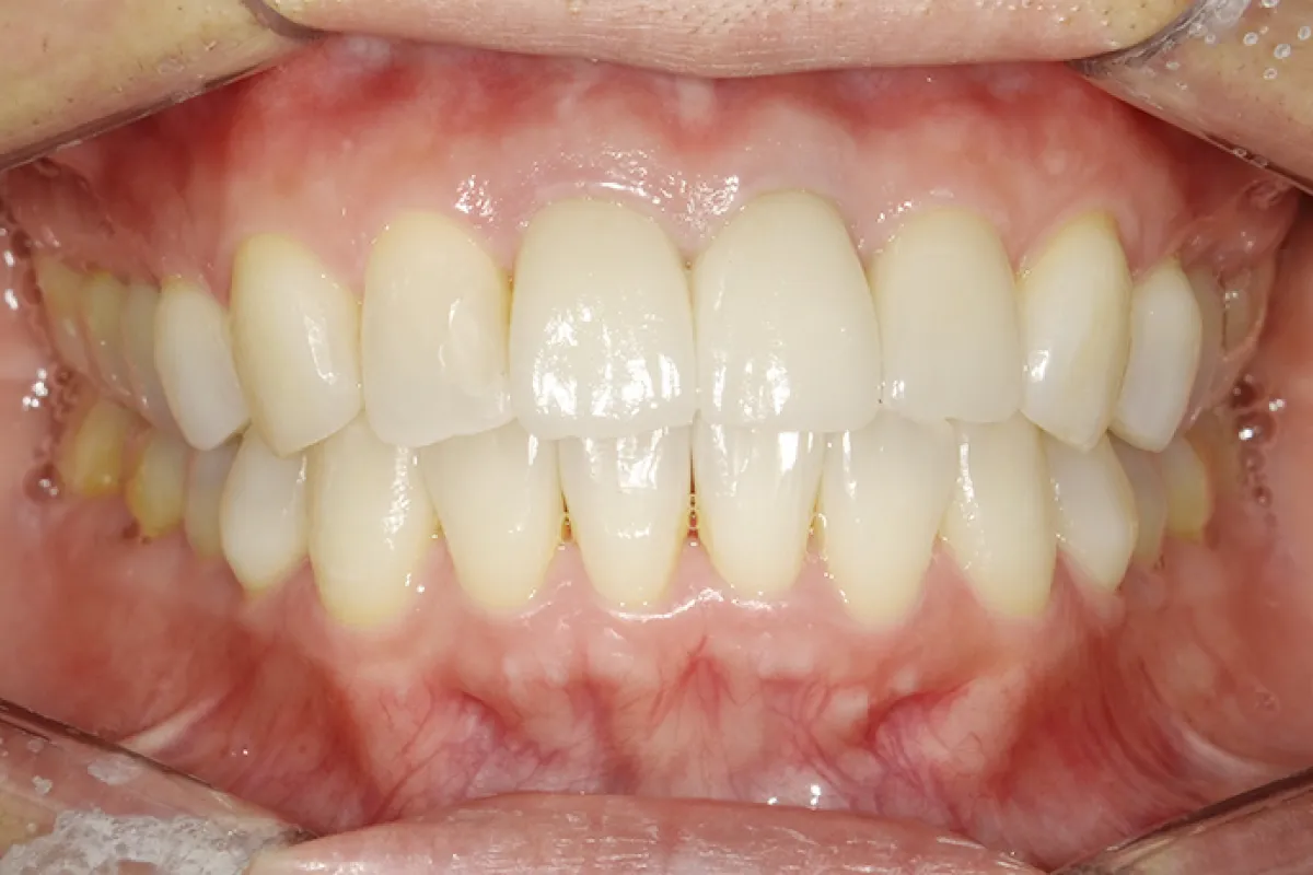 患者様情報 40代女性 患者様のお悩み 噛み合わせが強く、頭痛がする 治療概要 矯正治療による咬合関係の改善と審美補綴治療を提案しました。 まず、矯正治療の前準備として、歯のクリーニング、虫歯と銀歯の治療を […]